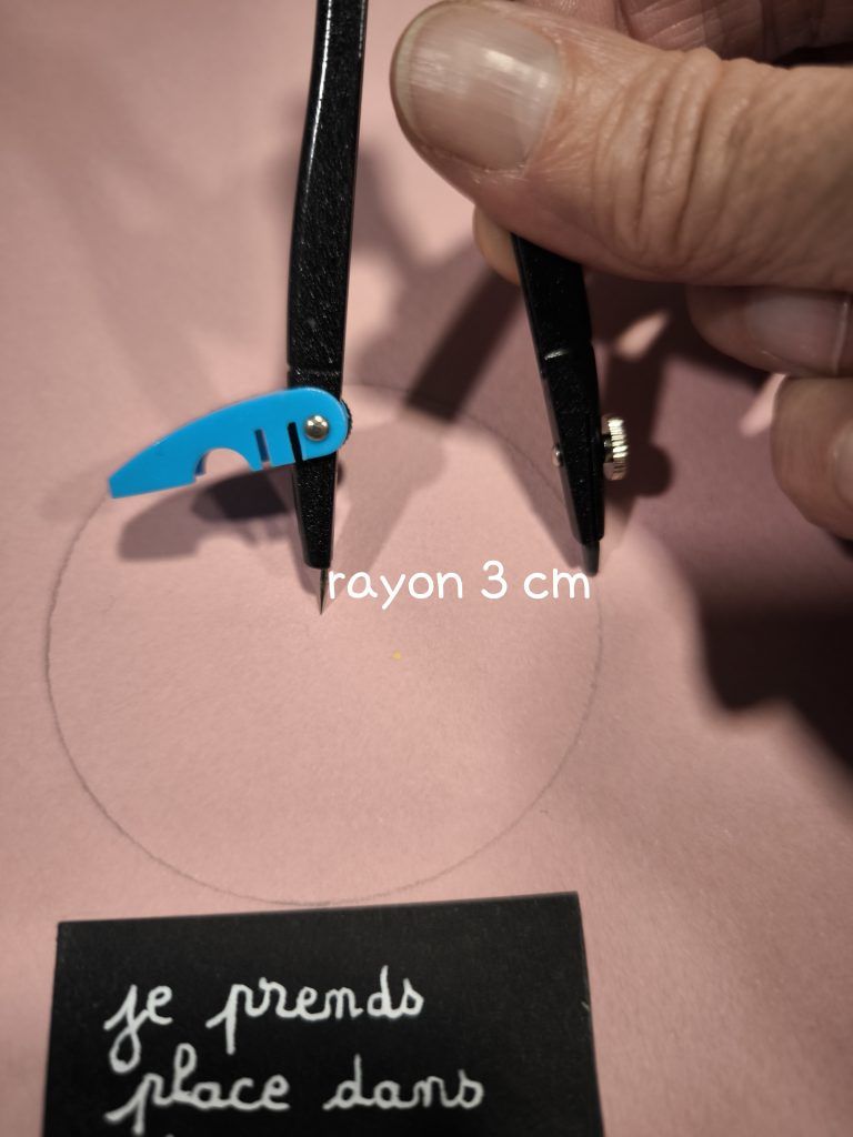 - sur ta feuille, dessine, posée sur le rectangle, une sphère d’un rayon de 3 cm (voir photo) et à l’intérieur de cette sphère écrit en violet : Moi (ton prénom) et de la couleur de ton choix : ce qui t’anime.